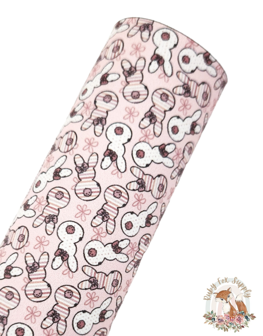 Pink Striped Bunnies 9x12 faux leather sheet